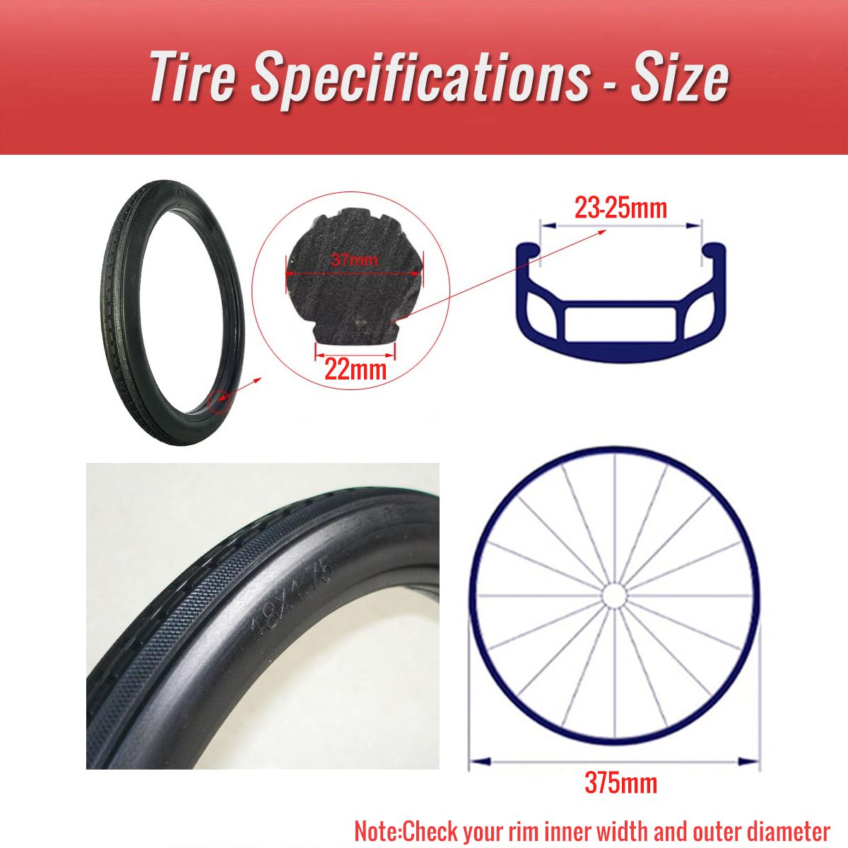- Tire Size: Tire Outer Diameter: 430mm; Tire Width: 37mm
