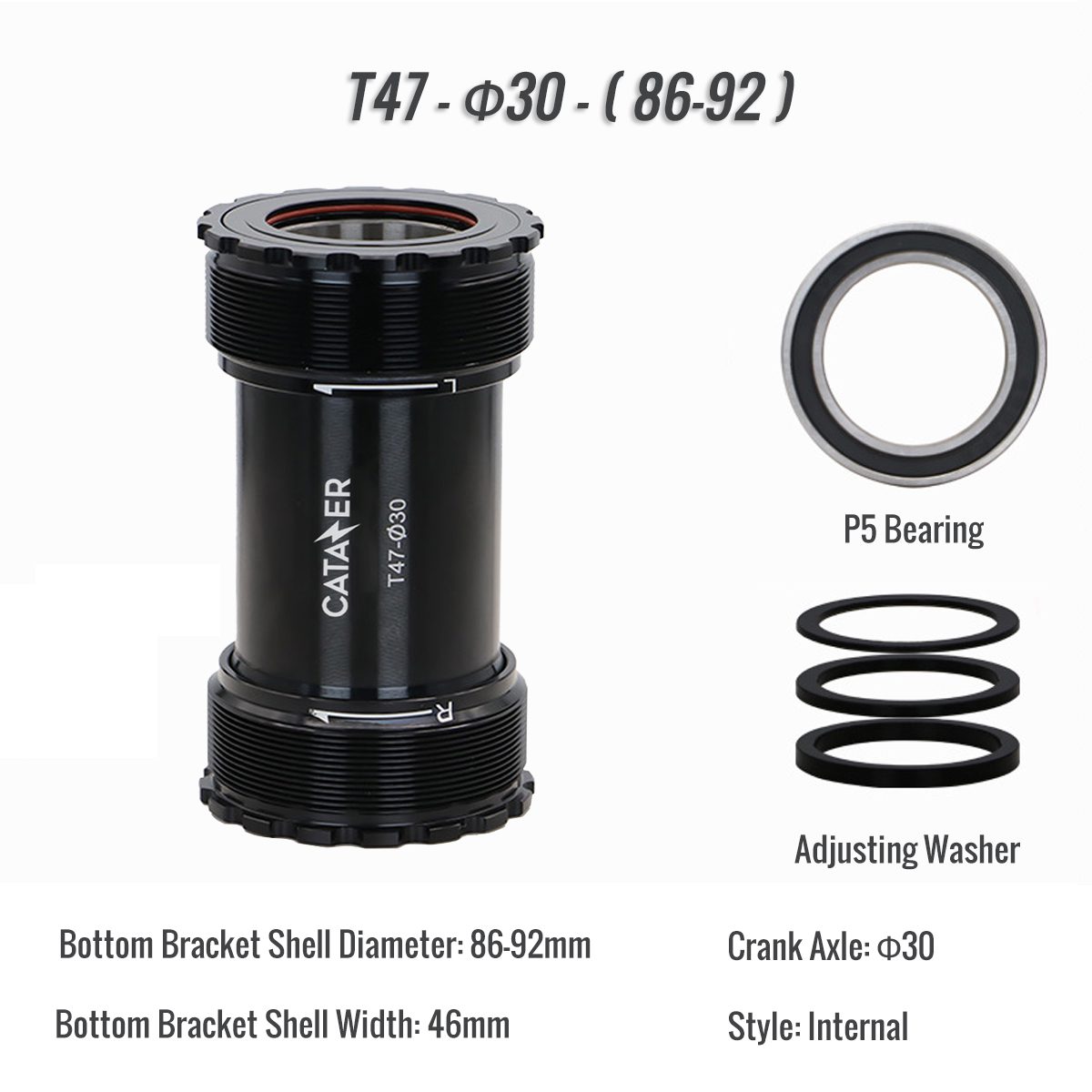 The CATAZER T47 Bottom Bracket is engineered for high-performance road and gravel bikes using T47 threaded frames. Designed to support 24mm, 29mm, and 30mm DUB crank spindles, this bottom bracket ensures smooth rotation, enhanced durability, and precise fitment for modern drivetrain systems.